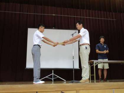 吹奏楽部も表彰しました。願っていた色の賞ではなかったですが、彼らの取組は素晴らしかったです。
