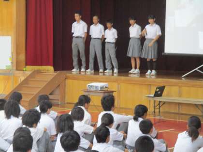 その後は、生徒会から夏休み中の取組の伝達です。