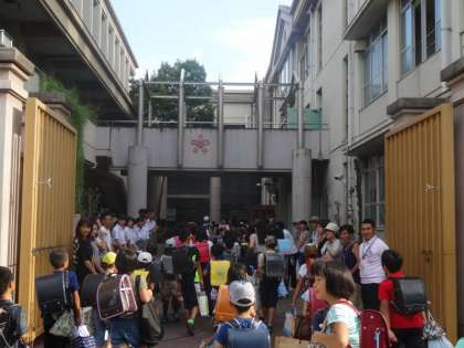 NSNプロジェクトの一環として、生徒会本の子たちが、朝に二条城北小学校に行って登校してくる小学生にあいさつと声掛けをを行いました。