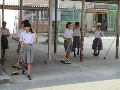 朝から環境委員の人たちが清掃活動を行ってくれちます。