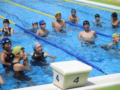 先ほどのプールで女子の髪が濡れたままです。冷房の風が寒くないですか。