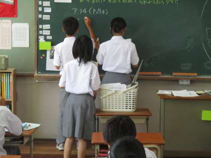 英語の時間には新しい単語や熟語の練習、数学の時間には、ひたすら問題を解いています。