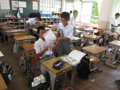 特別教室に移動する生徒たち、次の授業の用意をする生徒たちです。