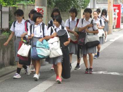 大きな荷物は部活動グッズでしょう。