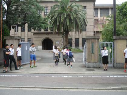 今日は多くの先生が校門に立ってくれました。
