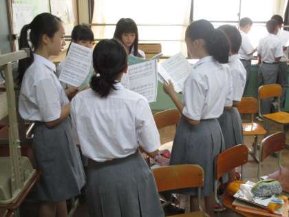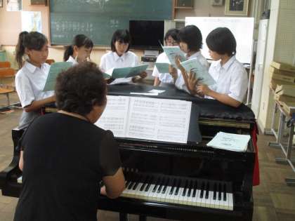 合唱を頑張っている声が校長室まで聞こえてきて第1音楽室へ行きました。
