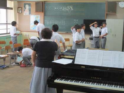 3組は2時間目が美術、3時間目が音楽です。向かいの部屋へ移動するだけです。