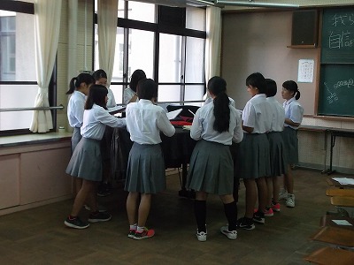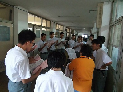 3年生は,なかなかの迫力です。男性パートの安定した歌声と女性パートの音域もしっかりでています。気合い十分ですね。心をひとつに,丁寧に仕上げていきましょう。