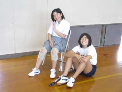 けがをして見学せざるを得ない人たちは残念そうです。カメラを向けたときにはそうも見えませんが…。