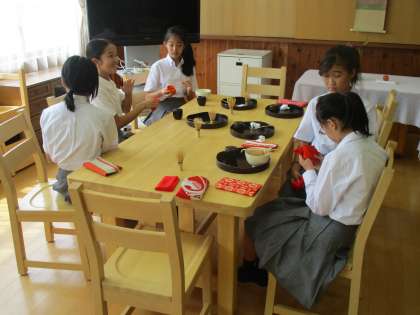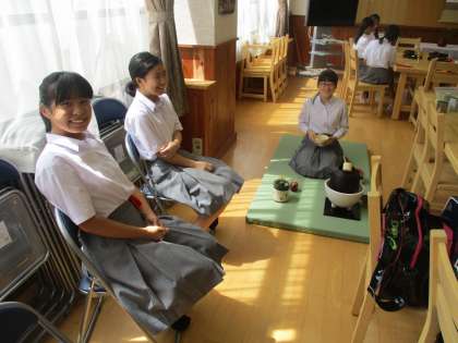 今日は、8名の生徒が参加してくれました。初心者で参加してくれた人は、帛紗の捌き方など割稽古を1年生は盆略点前を2・3年の経験者は薄茶平点前の練習をしました。それぞれ確実に上達してきていますので今後が楽しみです。