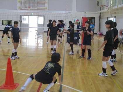バレー部は、今日も合同練習で頑張っています。