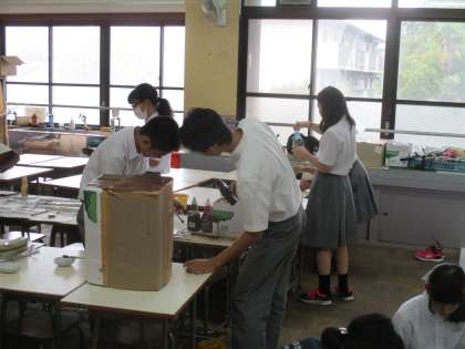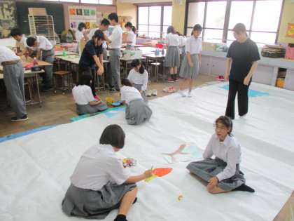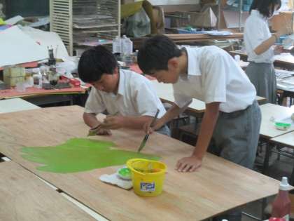 ここでは2年生が合同劇の背景を制作しています。