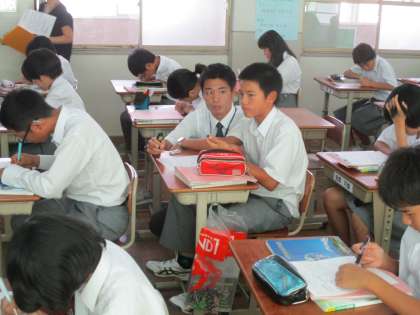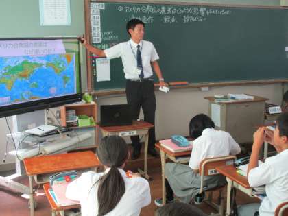 5時間目、教育実習の川田先生が1−2で社会科の研究授業を行いました。