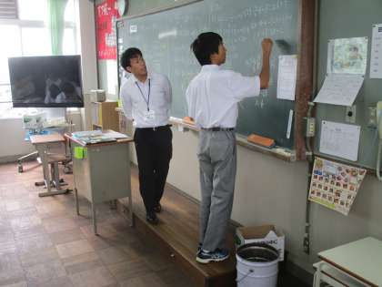 1年から、今日の授業の様子です。教育実習生の最後の数学の授業です。