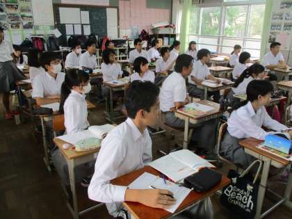3年1・2組は保健、3組は英語の時間です。