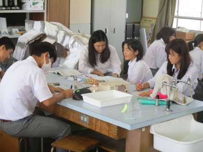3年の理科には、実習補助の先生も入ってくれています。