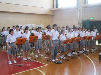 吹奏楽部の人たちもその場で歌います。