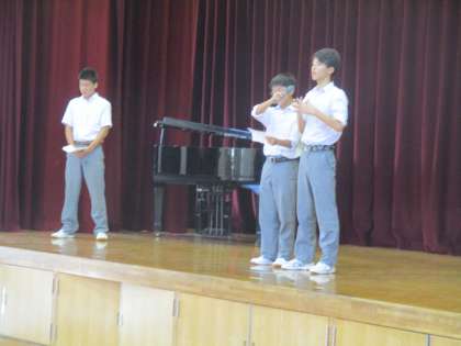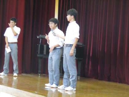 歌う前に5組の代表者が「全校手話コーラス」の歴史と意義について話してくれました。一生懸命に説明する姿が心を打ちました。