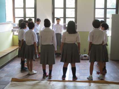 これは廊下で練習する2組の様子です。
