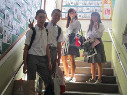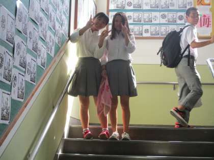 3年生が急いで講堂へと向かいました。キャストもスタッフも全員集合です。