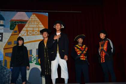2年の劇と同様、キャストが多いので演技指導だけなく道具作りや衣装づくりが大変だったと思います。