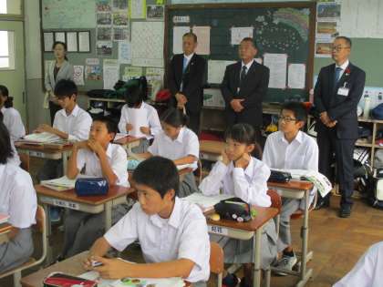 ちょうど1時間目が終わった頃だったので、廊下で3年生と一緒に記念写真も撮影しました。その後、各学年各学級の授業の様子を見て回られました。