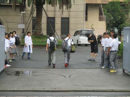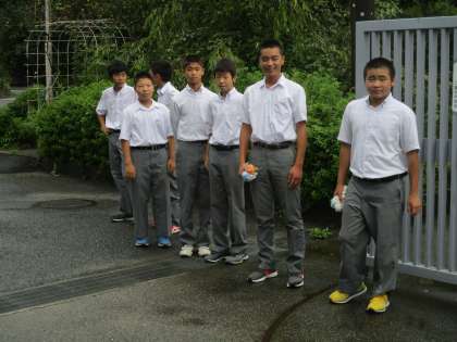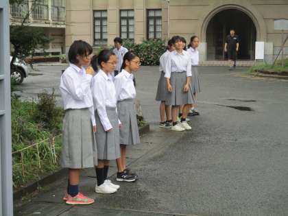 校門はじめ、学校の近くには委員会のメンバーを中心にした生徒の代表者があいさつに立ってくれています。