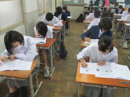 1年からテストの様子を観ていきましょう。一生懸命取り組んでいます。