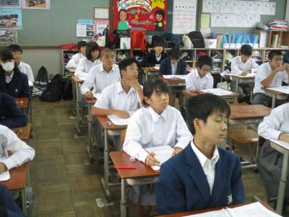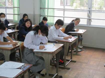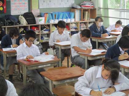 教科担当の先生が各教室を回ってきます。全体に対して注意や説明がなされます。生徒の顔が上がっているのはその時の様子だからです。