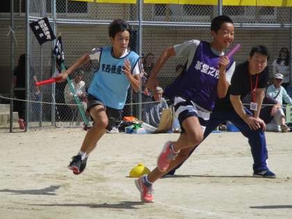 10代の男女の部で中学生が走っています。私も30代40代のときは走りました。