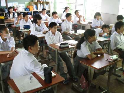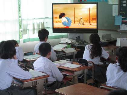 5組は数学、1組は国語です。国語のじかんにはDVDを視聴しています。「大人になれなかった弟たち」という有名な教材がありますが、それに関するDVDです。
