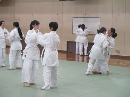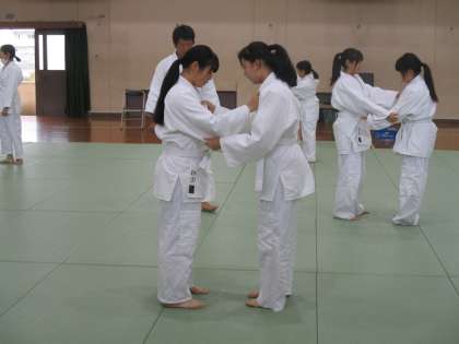 現在、3年女子は柔道を行っています。なかなか難しそうですね。