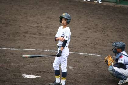 5回の表、キャプテンがレフトオーバーの2ベースを放ちました。