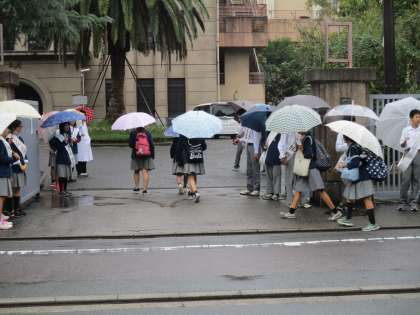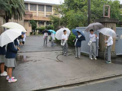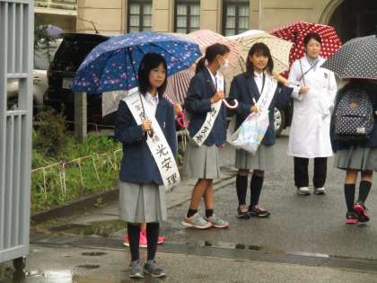 今朝から生徒会本部への立候補者が、校門で選挙運動を始めました。