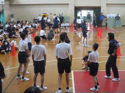 1つのチームに1〜3年生が入っていて、協力してバレーボールをパスし合いました。