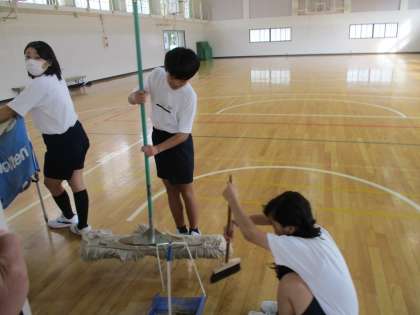 その後、講堂の場fれーボールを観に行きました。こちらも、片づけをしていました。