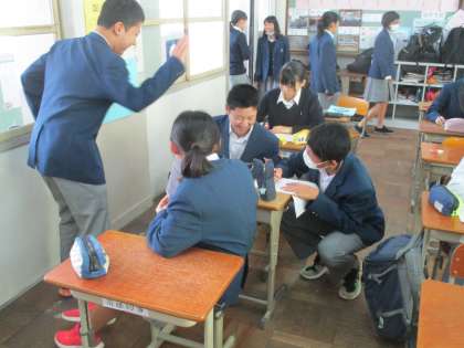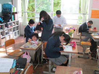 担任の先生がやってきました。そろそろチャイムが鳴るということです。