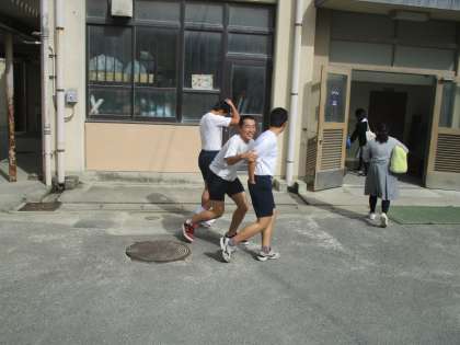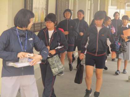 渡り廊下に居ます。この時間、南校舎から本館へ、そして体育館へと多くの生徒が移動していきました。