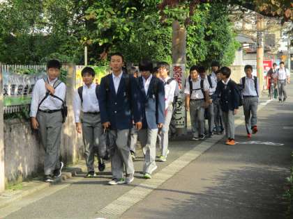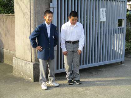 朝練習を終えた野球部が、校門でのあいさつに加わってくれました。