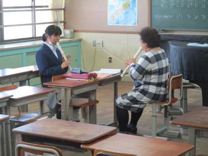 5組は音楽、リコーダの練習です。