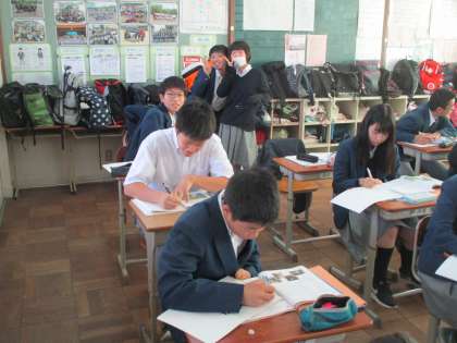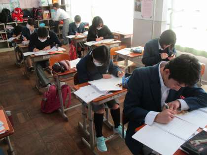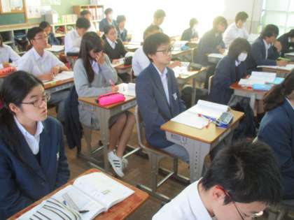 順番が来るまで、教室で待機をする人は自習です。熱心に教科書を見ていました。
