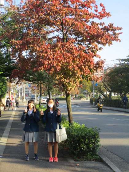 校門前のハナミズキもその葉の色を変えました。春と秋の2回私たちを楽しませてくれています。