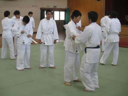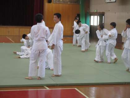 これは3時間目だったかな。体育の時間、男子は柔道を頑張っています。