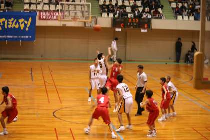 11時10分、横大路体育館で男子バスケットボールの準決勝が行われました。