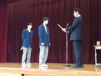 4時件目終了後、秋の新人大会で入賞した部や選手たちを表彰するため、臨時の全校集会を行いました。