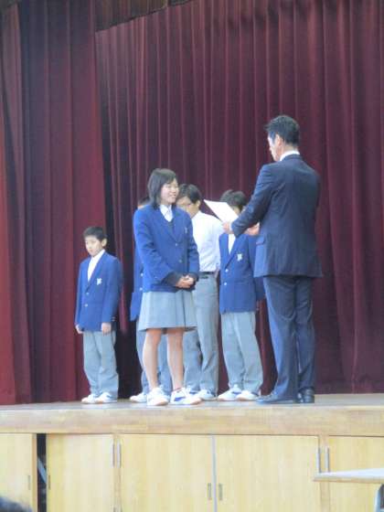 水泳部からは、50メートル自由形で全国大会へ出場した3年生女子をはじめに表彰しました。