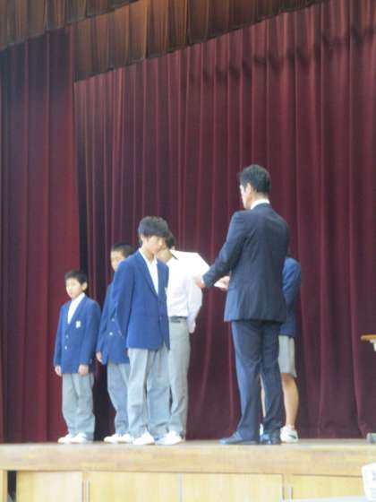 その後、新人戦での男子総合3位の表彰です。