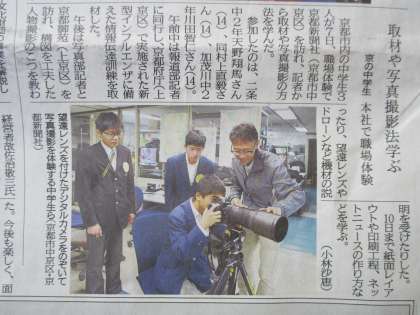 2年のチャレンジ体験学習で、京都新聞社に行っている人たちのことが当社の新聞記事になりました。