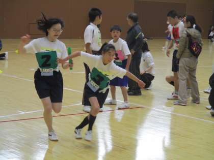 うちの3年生は2位でバトンをもらいました。1位との差をかなり詰めました。また第3走者の2年生は2位をキープしてアンカーにバトンを繋ぐことが出来ました。