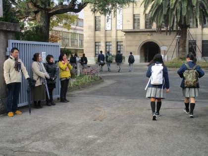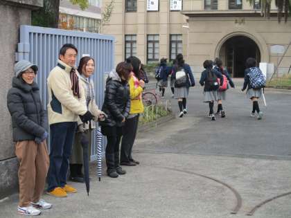 今朝はPTA本部役員の皆さまが一緒に校門に立ってくださいました。